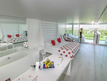 Готель Adam & Eve розрахований лине на дорослих відвідувачів та вирізняється яскравим декором у футуристичному стилі. До послуг гостей номери та окремі вілли на березі Середземного моря, безкоштовний Wi-Fi, великий спа-центр і величезний відкритий басейн.
