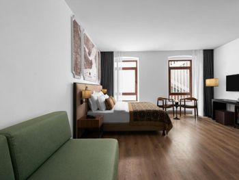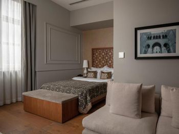 Номер был просторный и большой, интерьер не старый, убираются очень хорошо. Расположение очень классное.