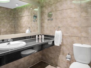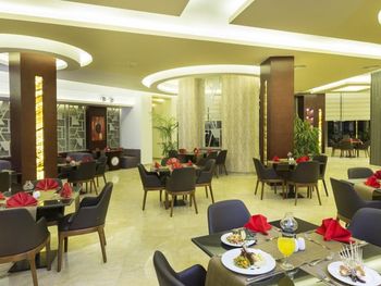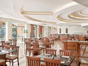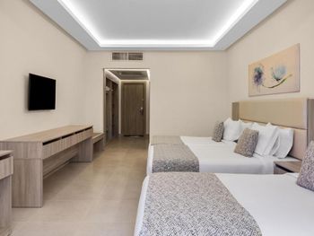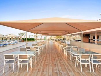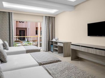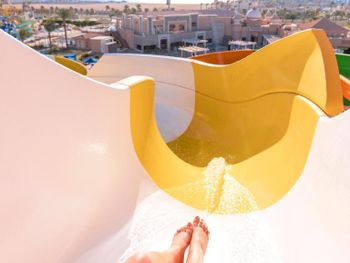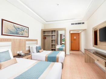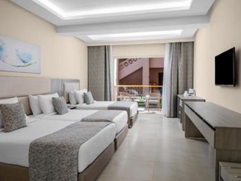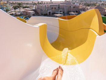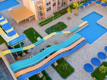 В этот отель приехали их джангл аквапарк, подумали сменить обстановку. И пожалели невероятно. Как будто тебя из комнаты с конфетами, посместили просто в кладовую. А стоимость одинаковая у них. Комнатка маленькая, старая, все обшарпанное. Унитаз вместе с раковиной, не хватает ещё только душа сверху. 2 полотенца на 3х. Не было туалетных принадлежностей, даже зубных щеток. На горках аквапарка можно кататься только с 10 лет и это главный облом, тк ехали туда из за него. Притом что в джангл куда круче горки и можно с детьми. Холодные бассейны. Территория обычная, мало зелени. Персоналу как будто похрен на тебя. Отель в принципе рассчитан на пакетных туристов. Очень много русских. В общем первые 2 дня мы ходили в депрессии от этого переезда.