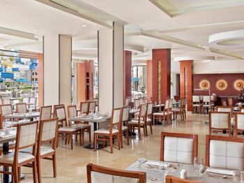 Инфраструктура отеля, у нас не было ограничений. Мы жили в одном отеле, а пользовались кафе и ресторанами 2-х других.