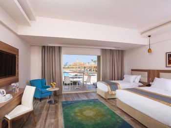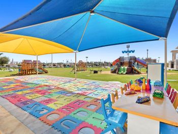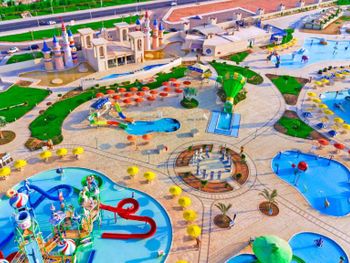 Минусы расположения море нужно добираться на автобусе ,нет кораллов нет рыб нет песка , работа бассейна до 17:00 прям очень расстроила хотелось бы чтобы до 19:00 , так основной выбор отель был из за аквапарка для детей