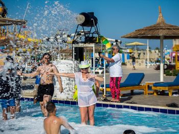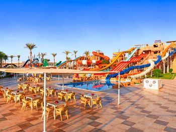 Всё! Горки старые, на проходах и лестницах торчат гвозди, мы даже видео не смогли снять так,как видно обдёртую краску га всех горках. Бара нет вообще, крепкие напитки только в лобби, где все курят, в таком большом отеле только один бар это жесть, я такого даже в отелях 3* не видела. Бармены все хамовитые. Мы подошли к бару, а бармены просто клацал телефон, мы стояли ждали, говорим, типо Вы работаете, а он стоит и говорит "ну да" и дальше клацает телефон. В итоге мы сами налили себе напиток. Кстати на всех барах пиво наливают в бумажные стаканы, которые текут и по пол стаканчика, грамм 20-30 😆днём ещё нужно найти, а вечером на программе они просто засыпают. Детям не интересно, когда аниматор не шевелится. Колонка на маленькой сцене была без бассов и скрипела так, что дети с родителями просто уходили так, как резало уши. Отель ужасный, отдых был испорчен. Мы больше никогда не приедем и я не рекомендую этот отель для отдыха. Цены очень высокие, а сервиса ноль. Также по еде, два раза за неделю дали креветки так они были такими перчёнными, что губы пекли. Один раз давали манго, так была очередь длинное в жизнь и чувак, который резал манго был очень неприятным и клал каждому гостю по маленьким трём кусочкам и добавку нельзя. Как в столовой, где-то в СССР, когда это был деликатес. Также в этом отеле НЕТ ГОРЯЧЕЙ ВОДЫ, всю неделю мы мылись в холодной воде, ребёнок улетел с насморком и кашлем. Мебель старая и поломанная, тумбы отваливались, дощик в душе не держался. Я вообще не понимаю за что я заплатила столько денег..