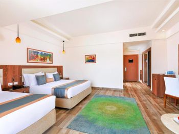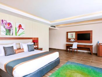 По началу воняло в номере, пока не заменили сифон. Вначале принесли поломанную кроватку, затем по просьбе заменили на рваную, и только в третий раз принесли новую. Не хватает музыки у бассеинов. Зимой в аквапарке холодная вода, поэтому на горках почти не катаются. Еда однообразная - каждый день одно и тоже. Шоу каждый день одно и тоже все 10 дней было и даже на НГ оно же было. Из 2ух Ala carte ресторанов работал только один и всего 1 раз можно было поесть в нём за всё пребывание. Территория голая. Пляж страшный.