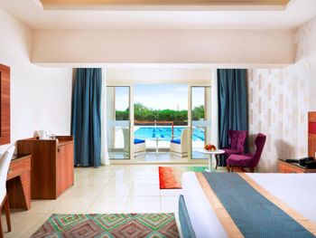 При заселении заселили в не в тот номер, должен был быть номер на первом этаже с террасой, по итогу сутки в другом номере. Почти все бассейны очень мелкие. Один бассейн с глубиной 170 см, остальные все 130-140, на самом деле их очень много на территории. Питание очень простое, в целом сносно.
