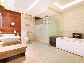 Свежий ремонт, качественная косметика, всё работает. Мы брали обычный номер, но нам дали номер люкс с видом на бассейн. В номере была вода, много косметики, обновляли каждый день.