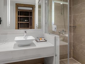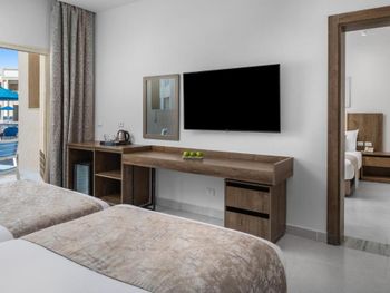 В этой ценовой категории это лучший для меня отель, каждый год стараемся сюда приехать. Новая современная территория. Большой и современный аквапарк. Хорошие рестораны. Большие и комфортные номера. Несколько подогреваемых бассейнов. Можно также пользоваться всей территорией и ресторанами четвёрки с её аквапарком. Есть вечерняя анимация плюс шоу Неверленд. Есть трансфер на пляж, примерно каждые 30 минут. Отличный персонал, на ресепшен, в ресторанах, барах. Хорошая уборка, наш уборщик Мохамед старался. Довольно близко старый город. Пляж в безветренной бухте. Замечательный лобби бар.