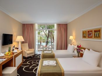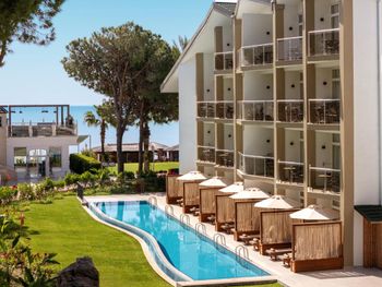 Шикарный отель! Превосходная огороженная территория, утопающая в зелени. Собственный большой пляж, парковая зона, всевозможные бары и кафе на территории, зоны отдыха на любой вкус. В отеле приветливый персонал, шикарная разнообразная еда на любой вкус, развлечения на любой возраст, по вечерам - не дешевая анимация, а полноценные концерты и шоу-программы. Находиться в отеле было сплошным удовольствием, машиной практически не пользовались, так как не хотелось уезжать. Отдыхать было крайне комфортно.