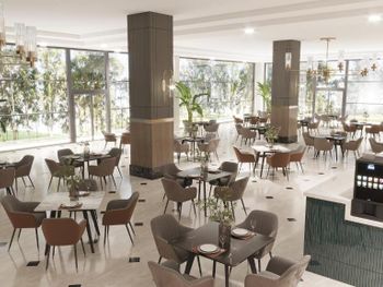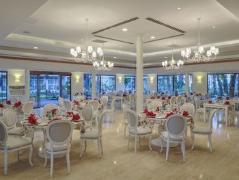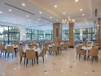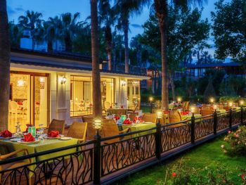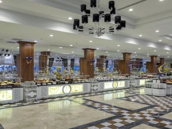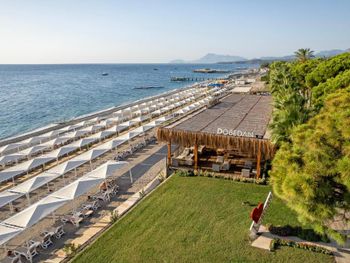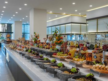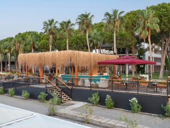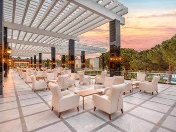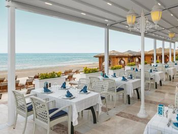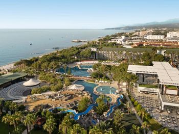 Большая, всегда очень чистая, ухоженная, много зелени, пять ресторанов, три бара в пляжной зоне и ещё несколько на территории. В снек-баре всегда полно еды - рыба, пицца, паста, фрукты, кондитерские. В отдельном ресторанчике готовят гёзлеме, в другом бургеры. Есть Старбакс (крохотный), есть небольшое кафе-кондитерская со столиками в тени деревьев. Всегда можно взять мороженое.