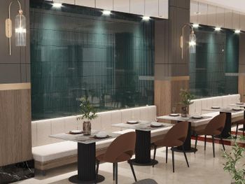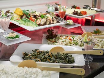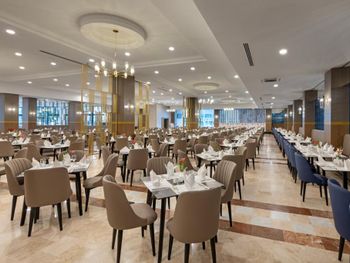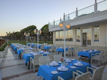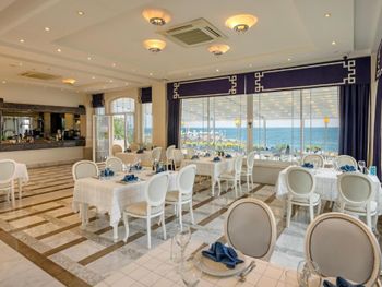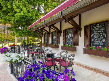 У ресторані готелю подають різноманітні страви. За запитом готують страви із спеціального дієтичного меню. Напої та закуски можна замовити в барі.