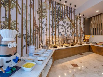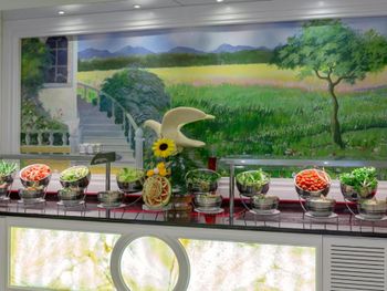 Еда жирная, выбор большой? но все однотипное. Выкручивались ресторанами a la carte (там можно было вкусно поесть, но только на ужин). Японский ресторан даже на ужин идти не стоит. Не вкусно. Сухо.
