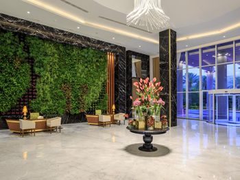 2) Вечером спустились в ресторан основной. Да разнообразия еды достаточно,как и во всех стандартных трёшках,чего то необычного не было из питания,на протяжении всего пребывания. Везде каждый раз когда брали еду,ощущения что мы не в 5-им звёздах,и всегда говорили ещё доложите. Хотя ДОЛЖНО быть наоборот,сказать хватит,спасибо. НЕ ПОНЯТНО почему ассортимент алкоголя отличается в лобби баре и в баре на пляже. В баре на пляже дешевый алкоголь,и если хочешь получше,идти нужно в лобби, или делать как Я купил за свои деньги бутылку. И ЭТО ЖЕ ОТЕЛЬ 5 ЗВЁЗД.))) порции когда наливают,мизерные,просишь налить допустим в стакан большой(мартини пример),не доливают,начинают бубнить на своём языке,а не нормально попытаться что-то объяснить. Позвали администратора,он сказал наливать. На следующий день повторилось,этот БУБНИТ под нос себе,в итоге ничего не изменилось,типа старший или младший из бармен сказал у них правила такие,наливать столько. Хоть мартини хоть виски))),и это ВСЁ ВКЛЮЧЁНО В 5-ти ЗВЁЗДАХ)). Фрукты по вкусу недозрелые,слива твёрдая что яблоко. Груша безвкусная. Была хурма не пробовали. Наливают порой в пластиковые стаканы. Сам лобби бар размерами небольшой,захотят даже 50% посетителей побыть в нем разом,не поместятся,это мы убедились при непогоде. Сидишь даже на диванах где ресепшн. Было так что номер не убрали один раз,уже когда позвонили,пришли принесли полотенца и банные принадлежности.
