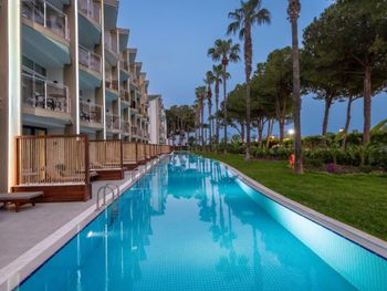 Отдыхали с мужем в мае, с погодой конечно не совсем повезло, море холодное, бассейны , как поняла, без подогрева ,тоже очень холодные, много хлорки. Отель полное соответствие ожиданиям, обычная среднестатистическая "5ка". Много вариантов для перекуса, разнообразие напитков, коктейлей, фруктов. Пляж галечный, входить без тапочек тяжело, детям и пожилым людям неудобно. Лежаков очень много, далековато от самого входа в море. Отличные шоу программы на вечер, скучно точно не будет, анимация зазывает на все возможные развлечения. Территория ухоженная, большая, есть где погулять. Есть мини живые уголки с птицами, животными, для детей мини клуб, пеленальные комнаты даже в зоне бассейна. Все продумано. Порекомендую ли я этот отель? -ДА. Вернуться снова сюда сильного желания не возникает.