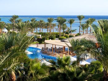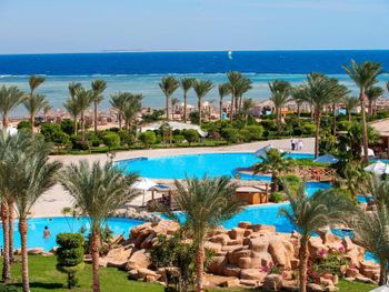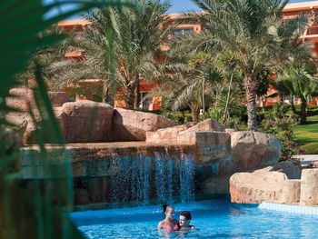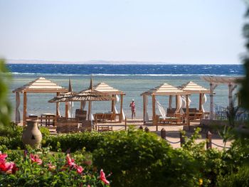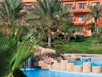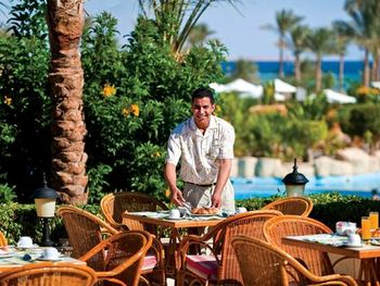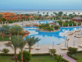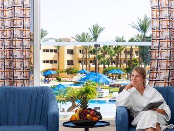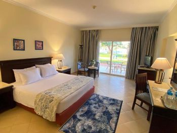 Сразу заселили в другой корпус с ужасно грязной комнатой. Грязь, плесень, пыль, ужас. Сломанные шкафы и тумбочки. За отдельную плату нас перечислили с помощью гида. В чистую но маленькую комнату уже в самом отеле с видом на басеен . Еда однообразная но вкусная. Мясо зачастую сухое и без соусов его кушать не получается. Грязные басеены, территория пляжа тоже не убираться особо. По всюду лежат стаканы из бара. Плохое отношение к русскоговорящим в особенности барменов. К морю идти пирсом минут 15. Пирс скользкий. Египтяне ложатся на полотенца и делают вид будто ничего не произошло. Всё соки и напитки розбавлены водой
