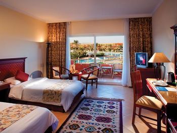 Просторный номер с огромной кроватью с выходом к бассейну и видом на море. Очень вкусная еда - много мяса и овощей. Мы ехали самостоятельно, без тура, благодаря чему получили vip-браслеты и особо уважительное отношение. К тому же русских сейчас в ШармЭльШейхе практически нет - по нам скучают и очень ждут там ;)