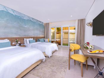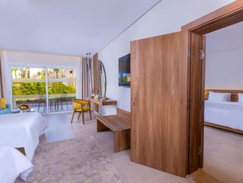 Прекрасный вместительный пляж. Питание в ресторане вкусное и разнообразное. Удобный номер с великолепным видом на бассейн и море.
