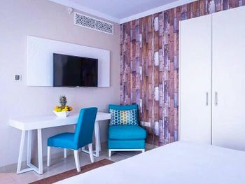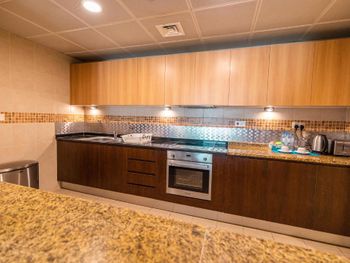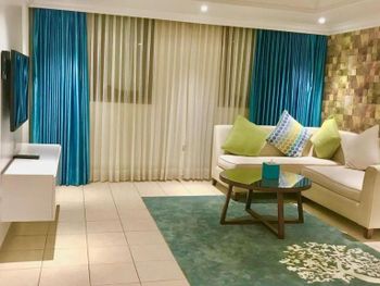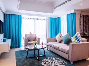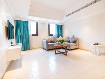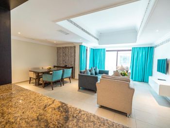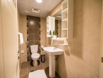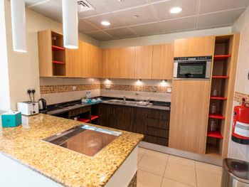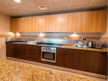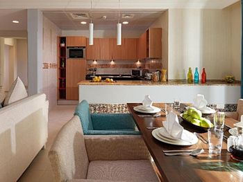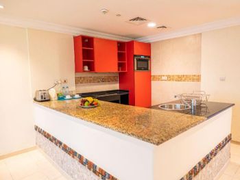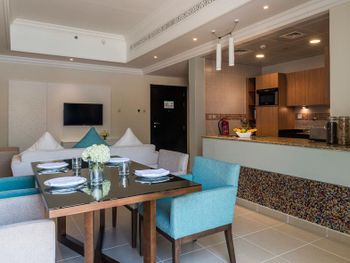 Отель вполне комфортный и недорогой по меркам Эмиратов. В отеле мы проводили не много времени, поэтому сказать о качестве услуг особо нечего. Отель далеко не новый. Номер был просторный с двумя спальнями и двумя ванными комнатами, также в номере была посуда, холодильник, стиральная машина, утюг и телевизор(вполне возможно это может показаться плюсом), номер довольно чистый. Также была терраса обнесенная бетонной стеной (непонятно зачем) и довольно грязная. В нескольких шагах расположен торговый центр с супермаркетом и разного рода кафе. Больше вокруг нет ничего. При планировании поездки необходимо закладывать в бюджет услуги такси, автобусная остановка есть поблизости, но за время пребывания мы не видели автобусов. Прочитав отзывы завтраки заказывать не стали, на территории есть много кафе, но мы там не ели, поэтому сказать нечего. Видимо данный отель, исходя из концепции и расположения предполагает отдых исключительно на его территории, но скорее всего постоянно там находится довольно скучно.