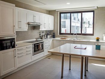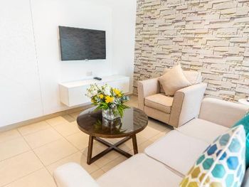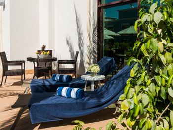 The property offers spacious suites from 1 to 3 bedrooms, furnished with fully equipped kitchens, customized beds, flat screen televisions and organic bath amenities. The one-bedroom suites offer 76 square meters terrace on the rooftop, perfect for relaxing on sun loungers or Al fresco dining. The two-bedroom suites feature either views of the pool or a private garden and are located on the ground floor, while the one and three bedroom suites are accessible by stairs.