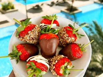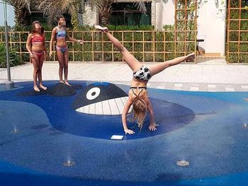 Мы приехали в 7 вечера и дети, увидев бассейн, конечно же захотели искупаться. Но к нашему удивлению и разочарованию, детям независимо от возраста после 7 купаться нельзя. Днем в бассейне действительно много детей, возможно данное правило придумали, чтобы гостям без детей можно было тоже провести спокойно время у бассейна. Но наши дети уже не такие уж и маленькие и не шумели вовсе. В общем, наши дети очень расстроились.