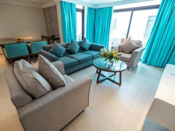 Valet parking, уютная и огромная территория отеля, отличное оформление. Доставка багажа. На территории несколько бассейнов и джакузи, куча ресторанов, спортивный зал. В дополнительные услуги входит посещение спа-центра на территории. Из отеля можно попасть сразу в молл, в котором помимо магазинов и кафе есть супермаркет Carrefour.