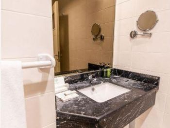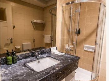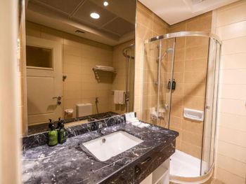 В номере все розетки арабского типа, ни одного переходника не было. В оставленных буклетах было указано, что на ресепшн можно запросить переходники. Однако на ресепшне были удивлены и ответили, что никаких переходников у них нет. Пришлось купить, т.к. никогда за все время пребывания в ОАЭ переходники нам просто были не нужны. С трудом можно представить как зарядить телефон или компьютер, если бы в магазине переходники закончились.