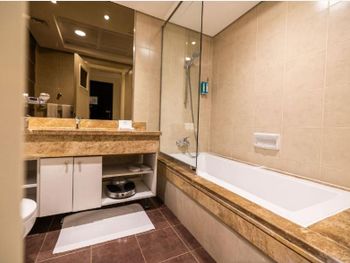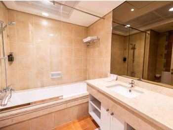 Персонал бесплатно повысил уровень номера. Дали большой номер с двумя комнатами, очень уютный и большой номер. Местоположение удобное где то посередине между островом яс и набережной корниш. До аэропорта 50 дирхам. При отеле большой бассейн,несколько кафешек на территории,небольшая игровая. Рядом есть ТЦ с супермаркетом и старбаксом.