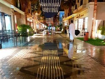 Located within the resort is a food street called Mamsha Al Seef by Andalus, offering over 20 outlets featuring international cuisines and retail options with Al fresco seating during the cooler months. The resort also has direct access to Al Seef Village Mall offering a variety of dining, retail and entertainment options, including Carrefour market.