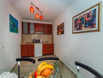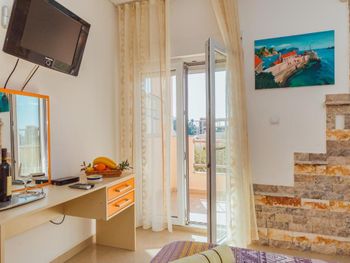 Я проживала в апартаментах с 15 по 25 сентября. В Черногории пляжный сезон уже подходил к концу. Расположение апартаментов великолепное. Народу в это время немного. Я бронировала студию , два дня прожила в ней, а потом перебралась в апартаменты. Рекомендую студию для проживания только тем, кто приезжает на два. три дня и не собирается готовить обеды и ужины, Комната небольших размеров, кухонный блок буквально втиснут. места для приготовления еды практически нет ,вытяжки над плитой нет, все запахи остаются в комнате. Осенью я могу открыть балконную дверь и проветрить, а летом, в жару как быть. Поэтому для тех кто ,как я, приезжает на неделю и дольше и планирует питаться в основном дома, советую подкопить денег и забронировать апартаменты .Это совершенно другое качество жизни. Я жила в апартаментах 7 и осталась очень довольна. У меня была терраса размером со студию и великолепным видом на гору, красиво обставленные комнаты, была микроволновка ,которой в студии не было, но вытяжки над плитой там тоже не было. Хозяйка апартаментов гостеприимная, доброжелательная. не стесняйтесь обращаться к ней по любому вопросу. Самый короткий выход из апартов к морю. С территории спускаетесь ВНИЗ по ступенькам, проходите через небольшую парковку покрытую гравием, поворачиваете направо и проходите вдоль белого дома, а потом вниз по проулку, а там до моря три минуты .Купаться советую ходить в противоположный конец пляжа, там нет гальки, только песок. И еще, самая вкусная пахлава в магазине Арома. который находится под высотным белым отелем.