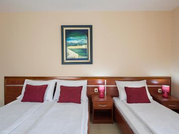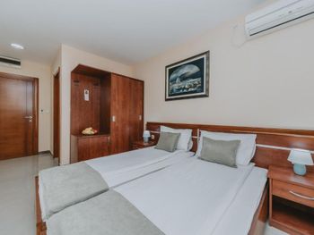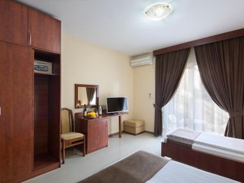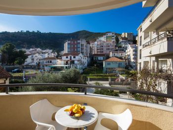 Расположение - супер! Рядом есть ВСЕ- пекарня, которая работает 24 /7 - где можно перекусить и выпить кофе, небольшой магазин, где есть все необходимое, большой супермаркет, турагенство, недалеко остановка автобусная, хороший подъезд для такси, если пешком или с ребенком - то ножками топать тоже отлично - никаких подъёмов вверх и никаких закаулков - 2 минуты и ты в центре, на набережной, пляж Словенкий - 3-4 мин пешком, диско OMNIA)))) Гостиница небольшая, но уютная, чистая, ухоженная. Зеленый двор в цветах и фикусах! НЕ шумно , а с террасы открывался шикарный вид на горы и атмосверный вид на другие гостиницы.