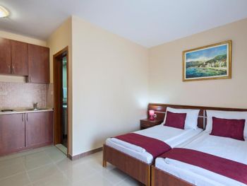 Очень довольны временем, которое провели в Salus. Приехали чуть раньше, хозяйка - очень приятная девушка, встретила нас лично, познакомились. Нас угостили ракией с соком, было очень приятно и неожиданно. Заселили в номер-студию с шикарным видом и балконом, на котором каждое утро мы пили кофе.