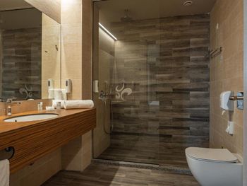 Потрясающее место, хочу сюда снова! У нас был просторный номер (нас было трое) с балконом. Для размещения багажа достаточно много места, полноценный большой шкаф, просторная ванная комната. Благодарю персонал за комплемент для нас! В этом отеле вкусно и разнообразно готовят. Вход в Аквапарк Несебр расположен почти на территории отеля. Вечером Вы тоже сможете развлечься, так как в цокольном этаже отеля не большой боулинг, караоке, игровые автоматы.