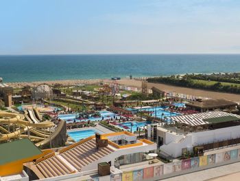 Далеко от моря,только шатл нужно ждать.Еда большой выбор,но не впечатлила.Много хлора в бассейнах у детей была аллергия,на лице под глазами особенно