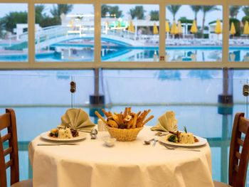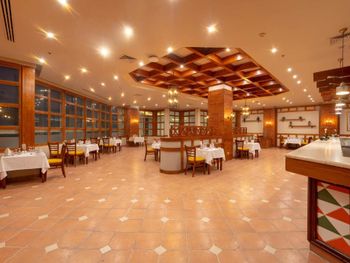 Ресторан большой. Я насчитал 8 столов раздачи пищи, которые расположены далеко друг от друга, что очень не удобно. Пищу тебе дают, как при карантине, через стекло и маленькие порции, а когда ты просишь добавки, то на тебе смотрят с таким видом, что ты уже и есть не хочешь. Мы уезжали с ночёвкой в ст.Катарина и попросили приготовить нам завтрак на вынос . Когда мы пришли в назначенное нам время забрать завтрак то нам сказали, что ещё не успели приготовить и будет готово только через час. Мы уехали на экскурсию без завтрака.