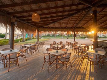 Очень мелкий пляж, чтобы поплавать надо идти по длинному пирсу и там есть квадрат с буйками 10 на 10м, вот и всё. В 18-30 всех гонят с пляжа. Напитки так себе.