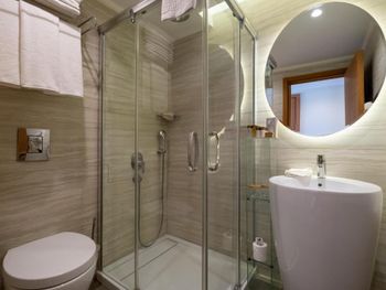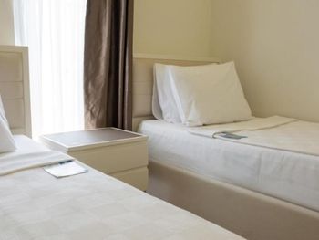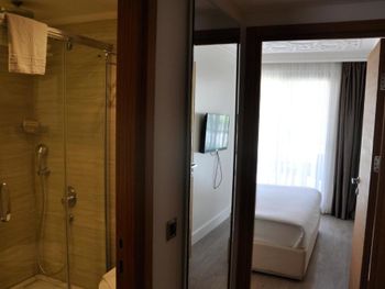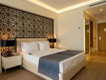 Отелю всего 2 года, но он уже начинает сыпаться. Нам достался номер с перекошенной дверью с москитной сеткой на балконе и с неработающими лампами в ванной и коридоре. Как готовили номер - для меня загадка. Мы брали 3х местный номер. Дополнительная кровать имела крайне странный вид, у неё не хватало заглушек на металическом основании, те что оказались в наличии были все погрызены. Подобную кровать нужно выбрасывать , а не гостям предлагать. Номера убирались из рук вон плохо, полы оставались грязными как в комнате, так и в ванной комнате (после хождения босиком ноги окрашивались в черный цвет), про балкон я даже не говорю. Если вы отдыхаете с маленьким ребёнком, который только начинает ходить вряд ли вы пустите его играть на пол. Честно говоря, сталкиваюсь с таким в Турции впервые. Так же удивило наполнение номеров. В комнате отсутствовало обычное мусорное ведро, даже самый мелкий мусор приходилось бегать выбрасывать в ванную. После одного подгузника в ведро уже ничего не входило. В номере не было геля для душа, тапочек ( по словам сотрудников все закончилось, и ожидалась поставка), про халаты я даже не говорю. К чести клининг персонала шампунь и мыло обновлялись постоянно и в больших количествах. В отеле очень слабый вай-фай, в номерах он совсем не работал и это в 21м веке. Бороздить просторы интернета можно было только в лобби.