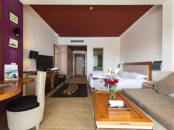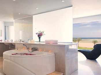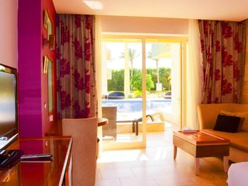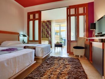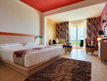 Сучасні номери та люкси оснащені балконом з видом на басейн або море, телевізором з плоским екраном та окремою ванною кімнатою з душем, феном і халатами.