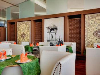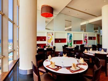 Брошюра обещает изысканные блюда со всего мира, однако про качество этих блюд ничего не написано. В еде из чанов иногда попадаются остатки вчерашних блюд. Морепродукты обычно приготовлены отвратительно, курица пересушена (актуально для шведского стола, пробовать в а-ля карт не рискнул). Из говядины обычно готовят вкусно (кроме колбас и сосисок). Салаты выглядят жутковато.