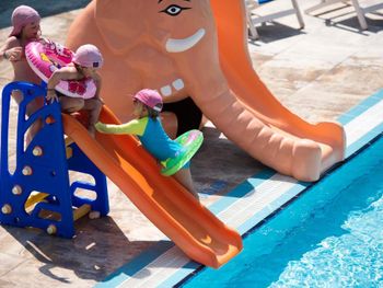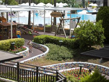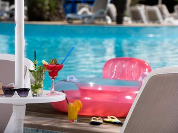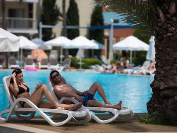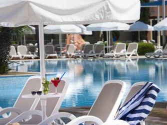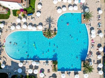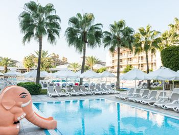 про бассейн ничего сказать не могу, ни разу его не посетили. Он простой не интересный. Но горки, по-моему, не работали. Такое впечатление, что во всех соседних отелях водяные горки построены для получения 5 звезд. Там висит красный флаг, и они не работают...