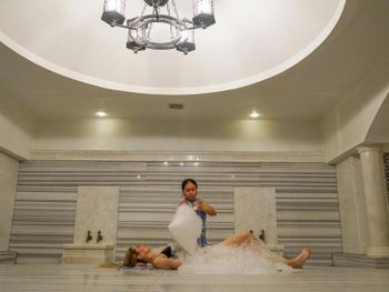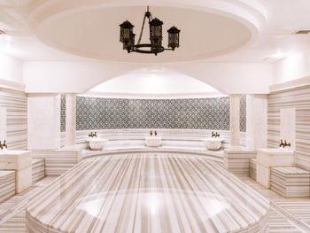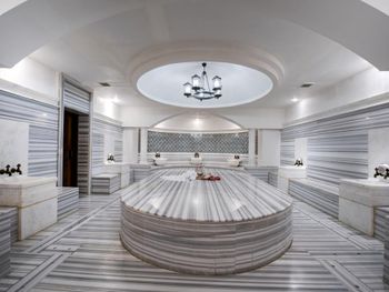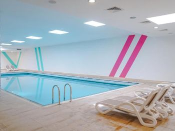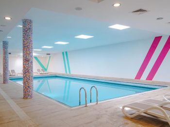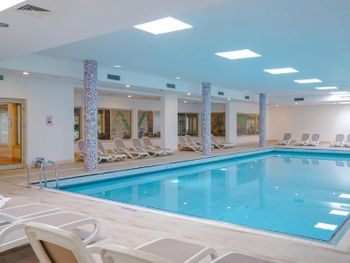 Бассейн с горками оказался хоть и маленьким, но классным - они очень быстрые! Легко подниматься и нет очередей. Один раз ходили в крытый бассейн, сауну и хамам- там все отлично.