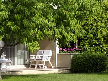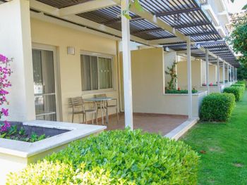 Территория отеля небольшая, но красивая - растут оливки, апельсины ипрочие красивые кустарники.