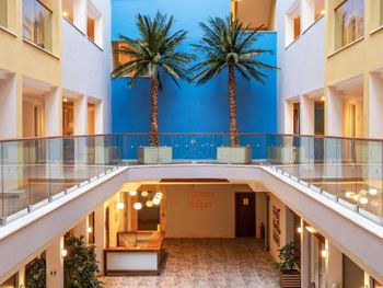 -очень приятный внутренний двор отеля, вообще сам отель с эстетической точки зрения выгодно отличается от соседних отелей, на него приятно посмотреть