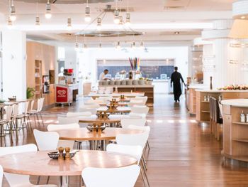 У готелі працює ресторан. За запитом для гостей готують спеціальні безлактозні та безглютенові страви. Гості можуть скористатися послугою доставки продуктів.