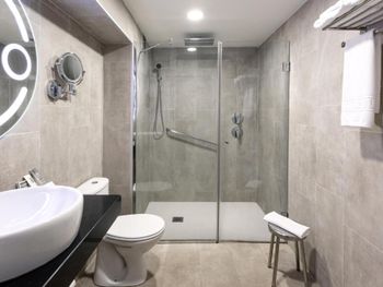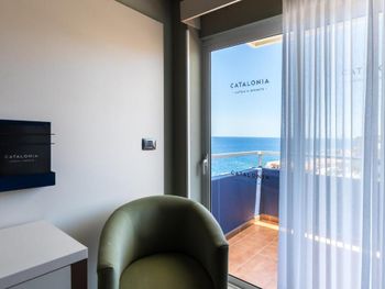All rooms at Catalonia Punta del Rey have air conditioning, a private balcony and satellite TV. They are modern in style and have wooden floors. The bathroom includes a hairdryer.