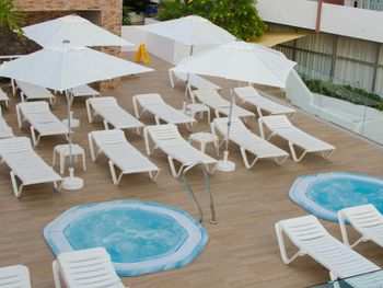 The main pool is surrounded by 2 hot tubs and sun terraces, including sun loungers and parasols. It houses a bar with all kinds of drinks.