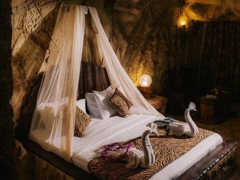 Отличная задумка в дизайне, очень живописные декорации, экзотические растения, фигуры ящеров и динозавров. Впечатляет!Людей в отеле было 15 человек, такое впечатление, что ты один. Многие фонтаны не работали, в номере были комары, пляж ужасный, с разломаными старыми лежаками, на котором ни одной живой души. Все в отеле уставшее, выцветшее и не свежее. Были запущенные корпуса с разбитыми стеклами. На территории Wi-Fi только в одном баре. При оплате за номер в сутки комиссия составила дополнительных 30% сверх заявленной цены, что поставило нас в неловкое положение.отель ,\'\'