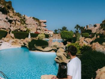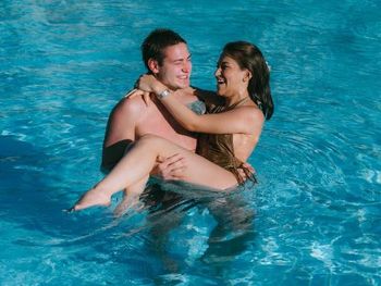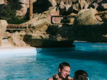 В подогреваемом бассейне много народа.