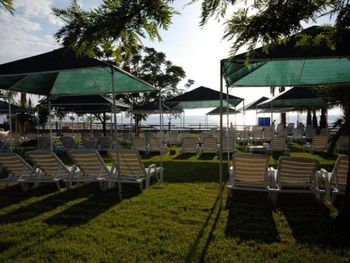 Нормальный песчаный пляж, хорошая зеленая зона с шезлонгами, очень удобно для тех кто не любит целый день лежать на пляже или возле бассейна а предпочитает более тихое место.