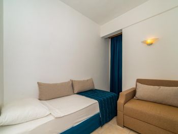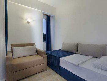 Жили неделю в этом отеле. Для меня было новостью, что в отеле у бара и в столовой нужно носить маски. Я бы не поехала в этот отель. Сами сотрудники отеля не всегда соблюдают эти правила, то есть маски носят, но нос открыт. Не понятно для чего такие полумеры, тем более что дистанция не соблюдается, перед входом в столовую столпотворение людей, шезлонги на пляже стоят впритык к друг другу. В один из дней для нас стало новостью, что время приема пищи поделено для номеров в три захода. То есть вы не можете покушать по раньше или позже. На входе в столовую скапливалось большое количество народа, тк проверяли в своё ли вы время пришли. С 19-00 до 20-00 бар закрывался на перерыв и если вы должны идти ужинать с 20-00, то вам негде взять никаких напитков, тк в столовую вас не пустят. Это очень испортило отдых. Еда достаточно разнообразная и вкусная. Пляж очень маленький. Что бы занять свободный шезлонг, надо встать с петухами. Заход в море хороший. Камни попадались, но очень редко. Полотенце для пляжа можно поменять или сдать только с 9-00 до 10-00 утра, что совсем неудобно, тк тащишь песок в номер вместе с полотенцем. В бассейне хорошие горки, дети в восторге. Территория небольшая, ухоженная, чисто. Номера нормальные, большой балкон. Очень много отдыхающих, которые «живут» у бара, к вечеру их вопли и поведение не очень приятны. В целом если убрать маски, глупые меры связанные с короновирусом, людей живущих у бара, жить можно)