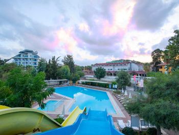 Жалко нет аниматора на горках кто бы следил за тем что дети не скатываются не подождав. Получалось очень опасно что дети прилетали друг другу на головы и не успевали отплывать. Еда на 3 очень мало мясных блюд. Номера маленькие, не очень чисто. Когда бронируешь отель приходит сообщения с номером WhatsApp и Еmail, но никто на них не отвечает.