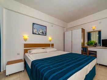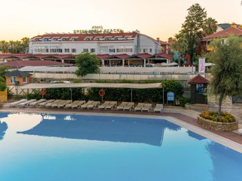 Отель старый: сантехника изношенная, звукоизоляция отвратительная. Мяса, кроме птицы, в меню нет. Супы - жидкие, на воде. Фрукты (даже в сентябре) не вкусные, а иногда и просто испорченные (арбузы, например). У персонала нет (даже не не хватает) бытовой химии для уборки. И, наконец, безопасность: впервые на отдыхе в Турции стали свидетелем групповой ночной драки (кошмар! поскольку охрана просто не разнимала две группы пьяных турок)