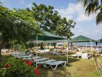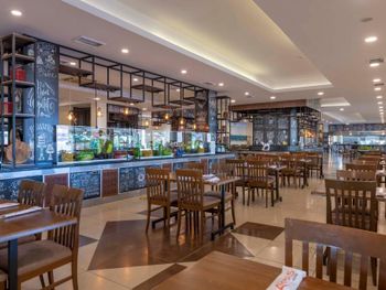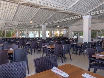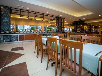 Полный отстой все что касается менеджемнта и управления, ни кто ни зачем не следит!!! Будьте готовы что в ресторане могут закончится тарелки для первого и чашки для чая и кофе и все будут ходить и не обращать внимания что стоят люди и ждут!! и это может быть 15 и более минут хотя на входе зачем то стоят сотрудники желают вам приятного аппетита а рядом стоит толпа ждет тарелки!! На баре он кстати один 7 наименований спиртных напитков очень низкого качества, я всегда пью в основном джин и он в Турции всегда боль мень но тут его пить не возможно! и это тоже не главное он открывается в 10 и в 11 в нем уде может что то закончится и за этим ни кто не следит. Мы были там 23 дня, на третий день из ресторана и бара убрали все нормальные кофемашины и поставили отвартные аппараты с какой-то растворимой жушкой которую пить просто нельзя! Ну и самое главное это контингент!! Здесь принимают российскую карту мир и поэтому 80% россияне при чем за почти месяц пребывания я понял что наверно тут собрались люди которые не знают что такое культура, воспитанность, в основном это женщины которые курят и бухают только водку и ракию с открытия😂 которые могут спокойно подойти к стойке с большими чашами с соусом зачерпнуть общей ложкой попробовать и кинуть обратно в соус по этому все что касается соусов не советую😂 взять в руки кусок арбуза он без шкурки и идти с ресторана есть когда все течет тебе по рукам, на одежду😳 и это малая доля того что можно рассказать .
